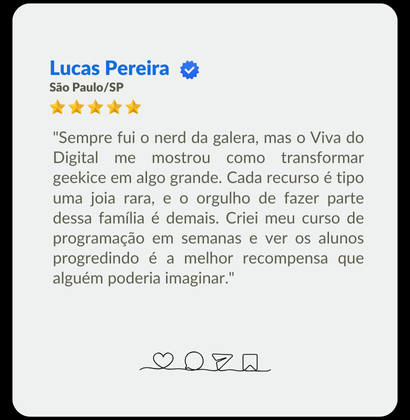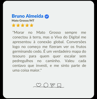 Porque sua vida merece uma transformação extraordinária, e este é o caminho comprovado para alcançá-la. Imagine acordar todos os dias com um propósito claro, liberdade financeira e a satisfação de impactar vidas positivamente. O Viva do Digital não é apenas um curso – é sua passagem para essa realidade.